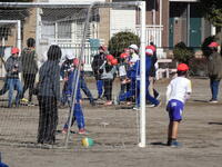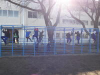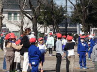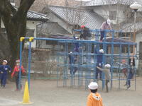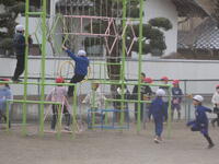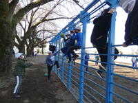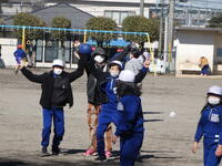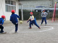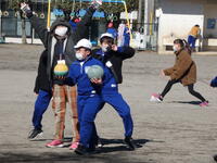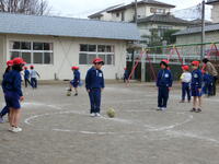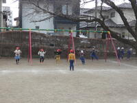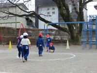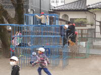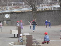 昼休みには、先生方が子供たちとパワフルに共遊しています。先生と遊んでいる姿は、とても楽しそうです。日差しが少し暖かく感じられ、外で遊ぶにはとてもいい天気でした。