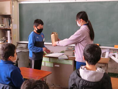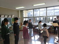 5年生が司会を行い、代表児童があいさつをしたり、リボンを贈呈したりしました。全校生で、温かい雰囲気で卒業生に感謝の気持ちを表すことができました。