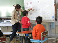 今日は1年生の教室にお邪魔しました。たくさんの笑顔で「こんにちは!」元気にあいさつをしてくれました。