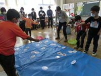 北校庭では、教頭先生と3年生の西っ子さんがなわとび対決をしていました。短なわで楽しそうに遊ぶ様子があちらこちらで見られました。