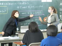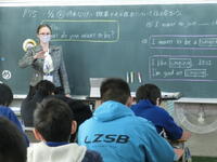 6年生外国語の授業の様子です。外国語専科指導教員とAETとのTTによる指導の下、将来なりたい職業とその理由に