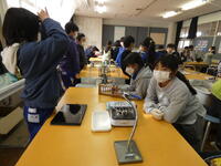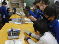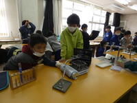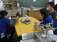 実験装置の扱い方に注意をしながら、予想を立て実験を始め、タブレットを活用して観察記録をとっていました。