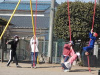 朝は氷点下の冷え込みでしたが、2・3・6年生の体育では、日向が温かく感じられる晴天のもと、みんな縄跳びを元気よく行っていました。