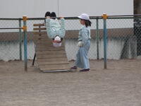 昨日は冷たい雨の一日で、外遊びができませんでした。今日はみんな楽しそうに、外で遊ぶ姿が見られました。