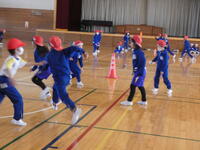 対戦が始まると楽しそうに、体育館を走り回って運動していました。