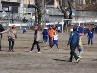 今日は、体育の様子です。春めいた日差しを受けながら、3年生と6年生が元気に、ボールを蹴っていました。