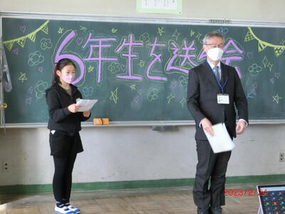 始めに校長先生のお話をいただき、在校生代表の5年生から6年生への贈る言葉がありました。