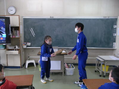 今日は「6年生を送る会」の様子です。各教室をMeetでつなぎ、実際に教室にも、プレゼントなど直接、贈呈に行くなど、工夫して行われました。