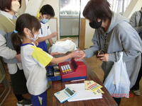 商品は、なかよし・ひばりの児童が、一生懸命に作ったものばかりです。手作りのバスボムや実用的なペーパークラフトで編んだ籠、きれいなリボンで編んだストラップなど、様々な種類の作品が並べられていました。来店した方々もどれにしようか、迷ってしまう様子でした。見て選ぶ楽しみを味わうことができる「なか・ひばショップ」でした。店員さんになった児童たちは、商品のご案内をしたり、お会計をしたり、袋につめてお渡ししたりと、大忙し。とてもよい体験をしながら学ぶことができ、大成功の様子でした。