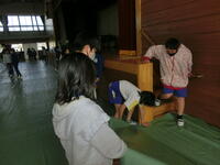 そのために、5年生が体育館の会場準備をしました。