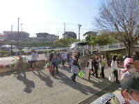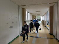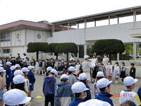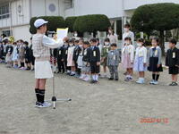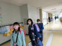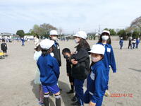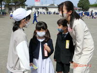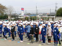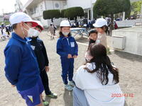 1年生が登校班に入り、メンバーの確認をしました。また、挨拶や横断歩道の渡り方の練習もしました。