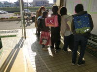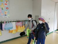 今日の西っ子さんは、登校してくる子供たちと朝の準備をする1年生です。