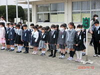 校長先生、6年代表児童からあたたかい言葉をいただき、ニコニコの1年生でした。