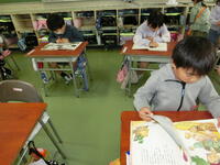 1年教室では、まず自分のランドセルを片付ける、提出物を出す、本を選ぶ、静かに読書する、という流れがすでにできていて、とても立派な西っ子さんたちの様子が見られました。