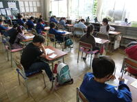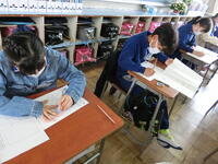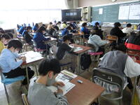 緊張した表情で説明を聞く姿が見られましたが、始まると一斉に問題用紙を開き、集中して問題に取り組んでいました。