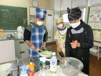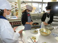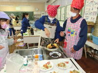 卵料理や野菜炒めに挑戦する西っ子さんたち、「えい!」と気合を入れながらフライパンと格闘していました。