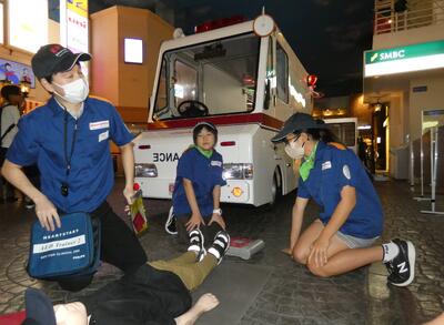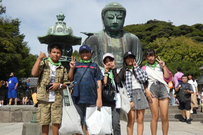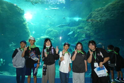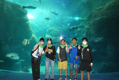 江ノ島水族館に入るときの班ショットをいくつか御紹介します。