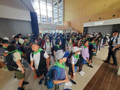 6年生が修学旅行へ出発しました。今日は藤沢・鎌倉方面へ、明日は東京方面を回ります。保護者の皆様、早朝からお子様の朝御飯の準備、ごくろうさまでした。御協力に感謝いたします。