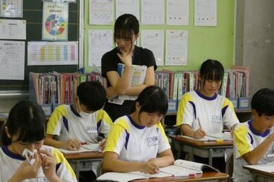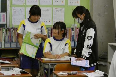 1年生は2学期の始まりに、「詩」について学んでいます。詩を音読したり比喩表現の効果を考えて味わったり好きな詩を選んで発表したりしています。