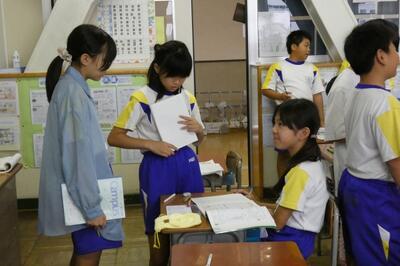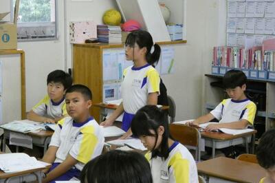 「反対の人は、反対の理由を言ってください」・・・司会進行の児童は、クラスみんなの意見を引き出しながら、話合いをまとめていこうと頑張っていました。