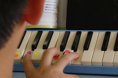 この時間は主旋律ではなく、それを支える和音が主役です。赤・・・「ドミソ」、青・・・「ドファラ」、黄・・・「シレソ」というように、様々な和音を「色」に置き換えてみんなで共有し、一生懸命に練習していました。