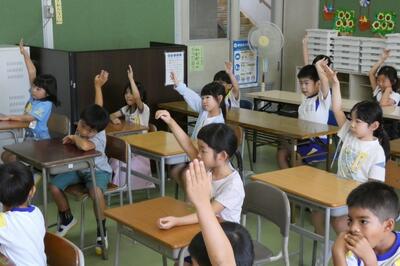 子供たちは、登下校や外出時、事件事故から自分の身を守るために大切な合い言葉「いかのおすし」について学んでいました。