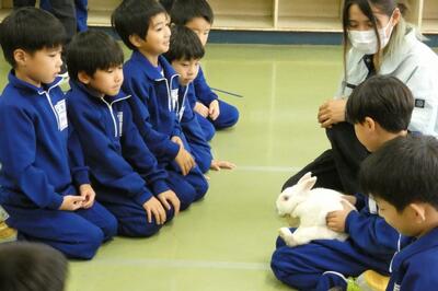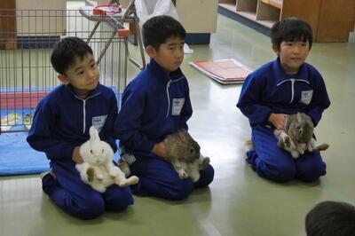 宇都宮動物園の職員の方を講師としてお招きし、1年生が生活科の学習でうさぎを抱っこしました。1年3組の様子をご覧ください。