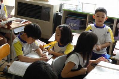 今年の運動会のスローガンのクラス案について、みんなで検討していました。その様子をご覧ください。