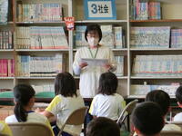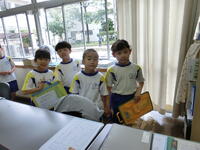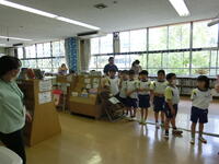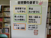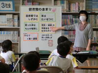 司書の先生から図書室の決まりを教えていただいた後、本の借り方や本の場所などを図書ボランティアの皆さんから教えていただきました。