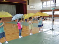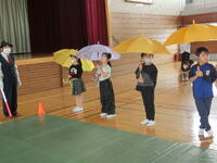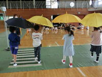 交番所長さん、交通指導員さんも来てくださり、ミニ信号を見ながら雨の日の歩き方を教えていただきました。