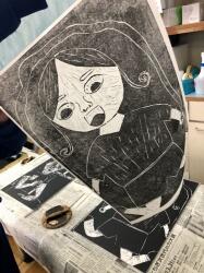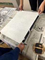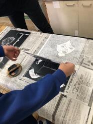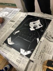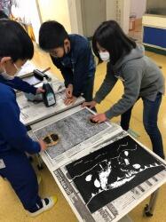 4年生が図工で版画に取り組んでいます。今日、すり上げました。