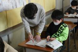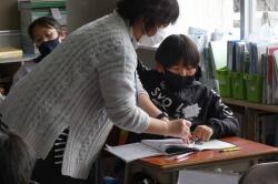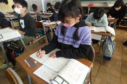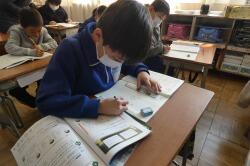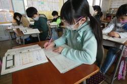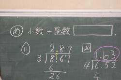 4年生の算数では、小数点を含む割り算に課題があることが学力調査で分かっています。今日はその割り算を粘り強く解いていく練習をしていました。