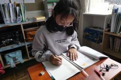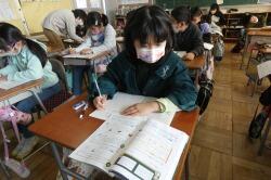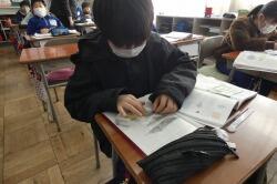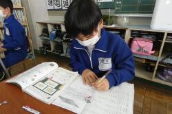 教室に入ってみると、多くの児童が自分の席で何かをしています。