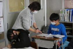 算数ドリルを解いています。ある児童に「今は授業中ですか?」と聞くと、「いいえ、休み時間です。」と答えてくれました。休み時間なのですね。証拠にこんな様子が。