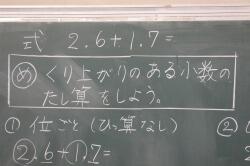 これまでの学習で、「繰り上がりのある小数の足し算はまかせとけ」のレベルになった児童もいるとか、いないとか。