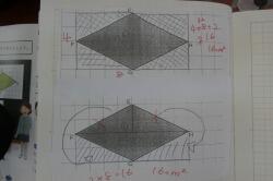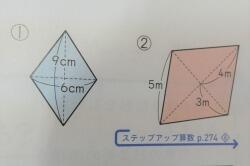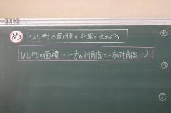 算数の授業で、ひし形の面積の求め方を学んでいるのです。