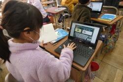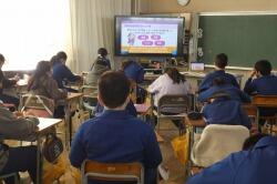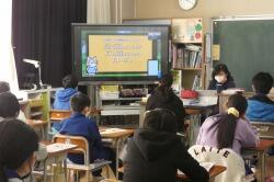 他学級では電子黒板に資料が提示され、同時音声で説明を聞いていました。