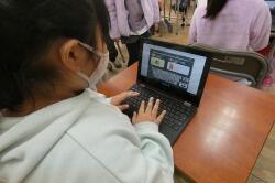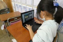ローマ字を学んでいるのです。ひらがなが出てきて、それをローマ字で打ち込んでいます。でも、授業中ではありません、休み時間です。しかし、真剣に、しかも楽しみながら行っています。