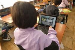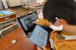 2年生が教室でタブレットを使って何かをしています。見てみると、