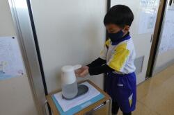 休み時間にすること、それはトイレの後などの手洗い、教室に入るときの消毒です。今後も徹底していきます。