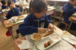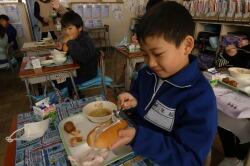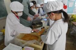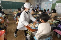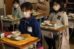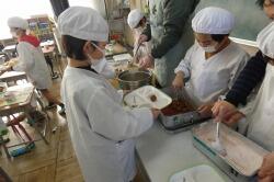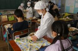 2年生の給食準備にお邪魔しました。配膳中でした。