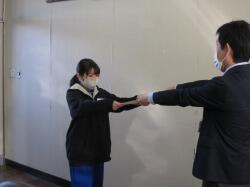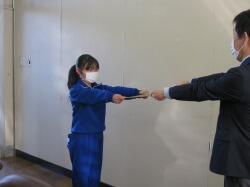 1月の全校集会を行いました。校長講話と表彰です。校長講話は「校長室から」に掲載しましたので、ご覧ください。講話の後、表彰を行いました。