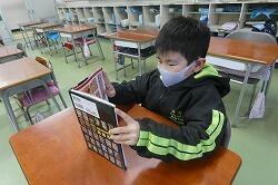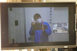 今朝、2階の教室(2年・なかよし)に向けてリモートで読み聞かせを行いました。