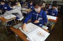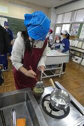 この後、各自が自分が作った味噌汁を無言でいただきました。コロナ禍でこれまで調理実習はできませんでしたが、レベル1となり、感染対策をしっかりして一人調理を実施しました。調理実習を堪能した5年生でした。