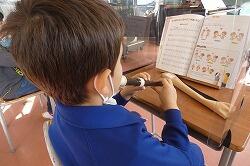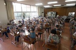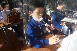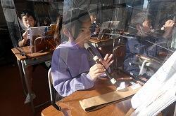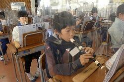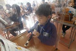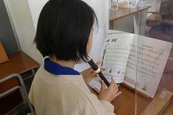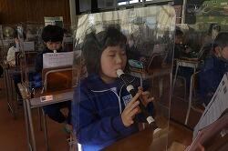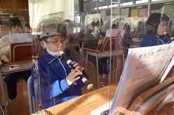 3年生からリコーダーの演奏が始まりますが、コロナ禍のためできませんでした。感染状況が落ち着いたため、音楽室にパーテーションを設置し、リコーダーの練習を始めました。