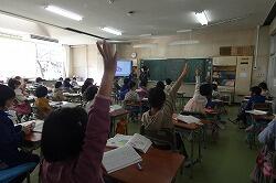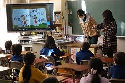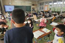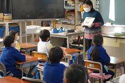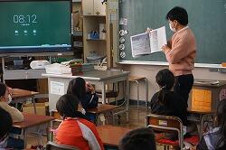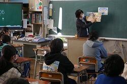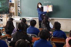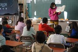 感染のレベルが下がったため、教室での読み聞かせを再開しました。1年生はお話の会くれよんの皆様によるリモートでの読み聞かせです。2年生以上の教室での様子を紹介します。