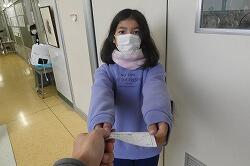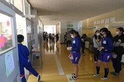 まずは、本の返却です。本をもって図書室に行きます。おっと、すでに多くの人が来ていますので、廊下に並ぶ必要があります。最後尾に並びます。渡り廊下のほうでした。