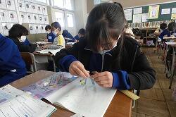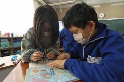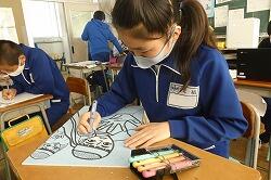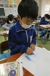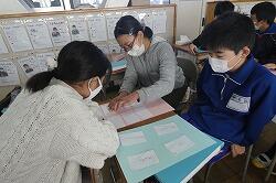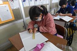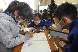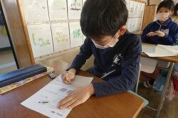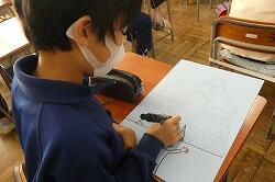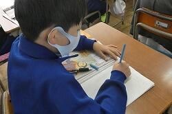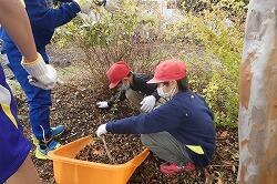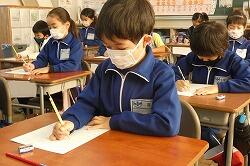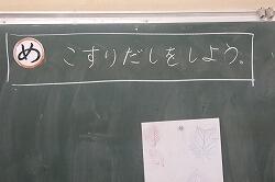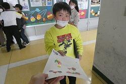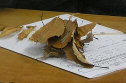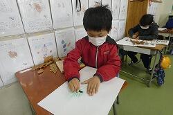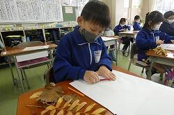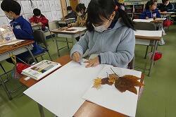 この後、葉っぱの形をはさみで切りだして色画用紙に貼っていくようです。なお、ここで使った落ち葉は生活科校外学習で行った井頭公園や校庭で拾ったものです。できあがりが楽しみですね。