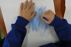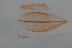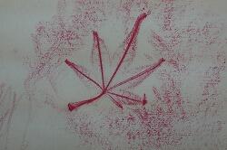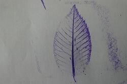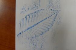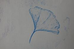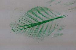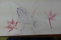 紙の下に葉っぱを置き、クーピーで作業を始めました。