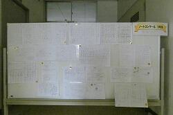 ノートコンクール:工夫されたノートが掲示されています(1年)